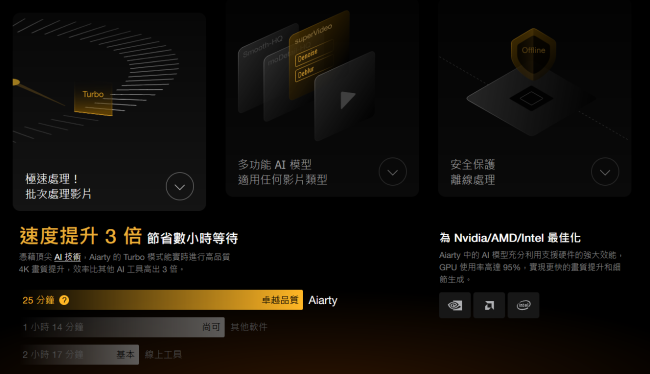 它擁有專業的 AI 模型、即時升級功能以及 GPU 加速支持,確保高效能和卓越的效果。