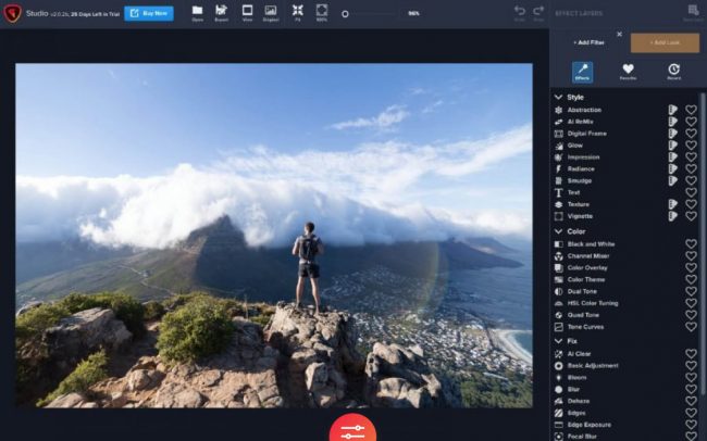 使用不同的混合模式和不透明度混合和符合濾鏡和效果。使用完全無損的圖層工作流之後,可以編輯和調整Studio中所做的所有操作。