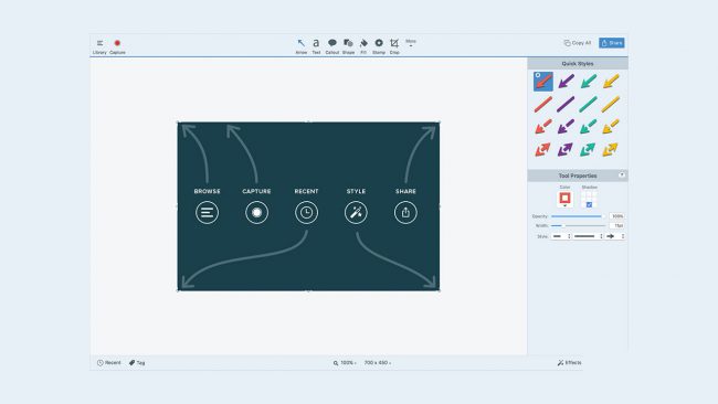 使您的螢幕快照跳出並帶有陰影。給它一個角度,聚焦一個區功能變數,或加入其他漂亮的效果。