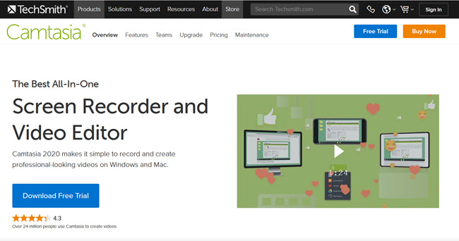 另一個是Camtasia發行商,可以說明您根據需要修改任何電影和音訊。它在您的節目中獲得了完整的專家結果。