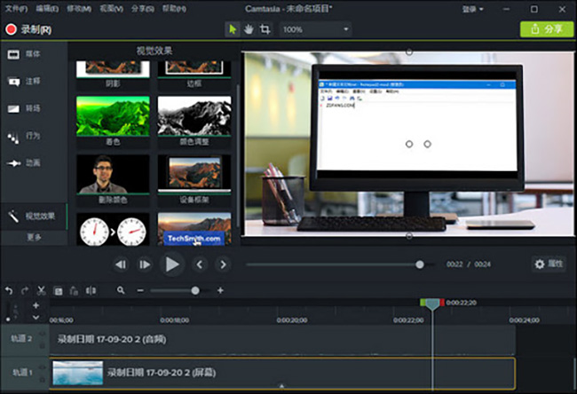 但是擁有TechSmith Camtasia Studio 2020直裝破解版之後便不同了,它具備了多個元件,可以錄製視訊,也可以處理視訊。