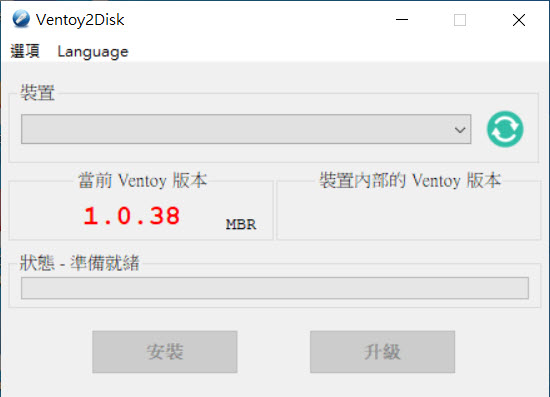 Ventoy In Device:USB磁碟中已安裝的Ventoy版本號,如果為空則表示未安裝