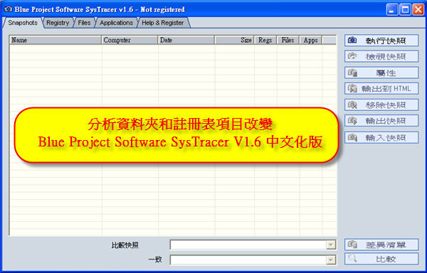 【文章標題】: 分析資料夾和註冊表項目改變-Blue Project Software SysTracer V1.6 中文化版