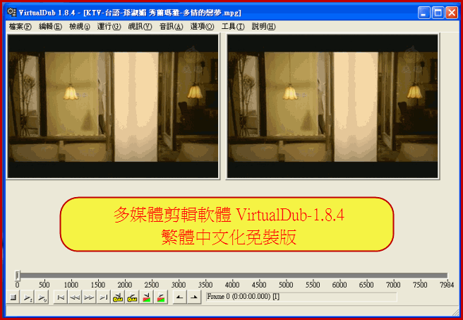 【文章標題】: 多媒體剪輯軟體 VirtualDub-1.8.4 繁體中文化免裝版