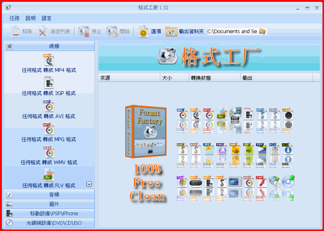 【文章標題】: 媒體格式萬能轉換器 FormatFactory v1.32 多國語系版