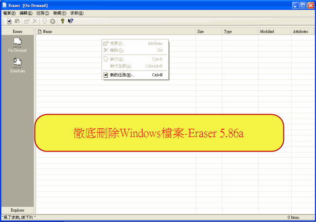 【文章標題】: 徹底刪除Windows檔案-Eraser 5.86a