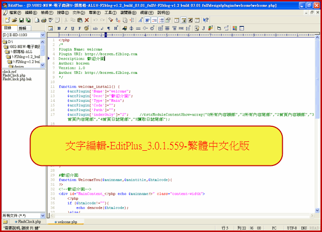 【文章標題】: 文字編輯-EditPlus_3.0.1.559-繁體中文化版