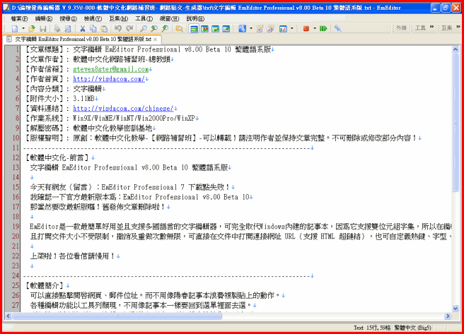 【文章標題】: 文字編輯 EmEditor Professional v8.00 Beta 10 繁體語系版