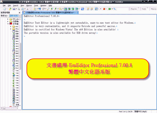 【文章標題】: 文書處理-EmEditor Professional 7.00.8 繁體中文化語系版