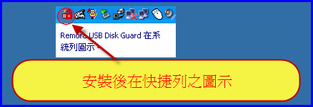 * 安裝完成後,Remora USB Disk Guard 會自動啟動並縮小至系統列。