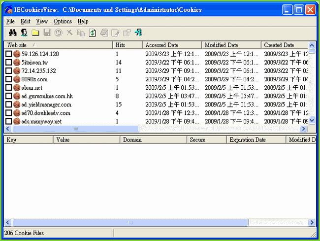 瀏覽輔助-搜尋並顯示Cookies檔案 IECookiesView 1.74 繁體中文化版下載網址: