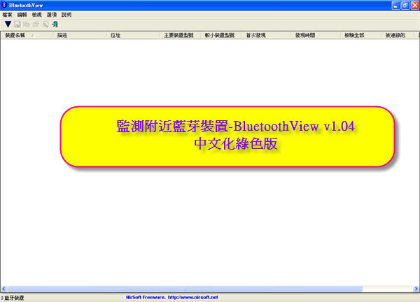 監測附近藍芽裝置-BluetoothView v1.04 中文化綠色版下載網址: