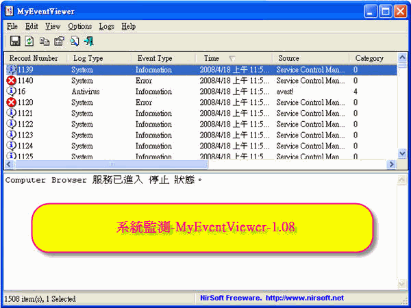 系統監測-MyEventViewer-1.08繁體中文化版(免費軟體)