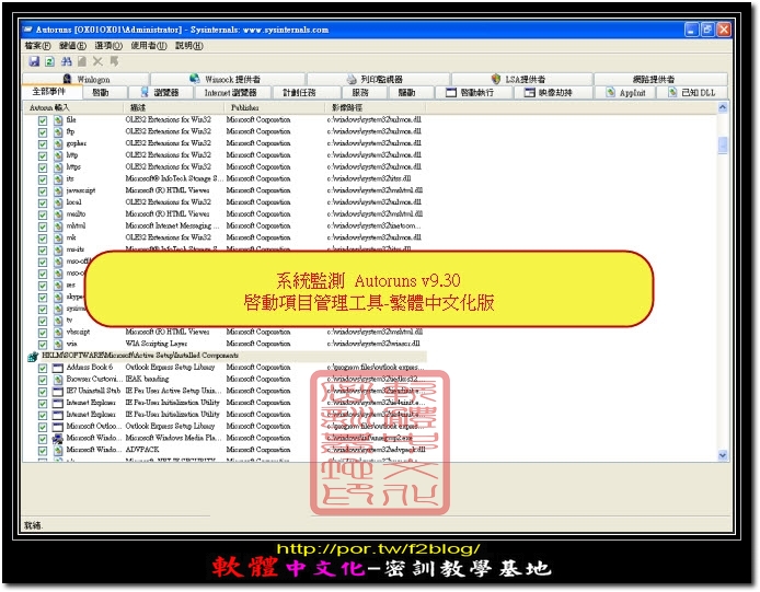 系統輔助-AutoRuns v9.30 繁體中文化版下載網址: