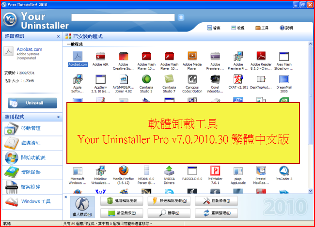 軟體卸載工具-Your Uninstaller Pro v7.0.2010.30 繁體中文版