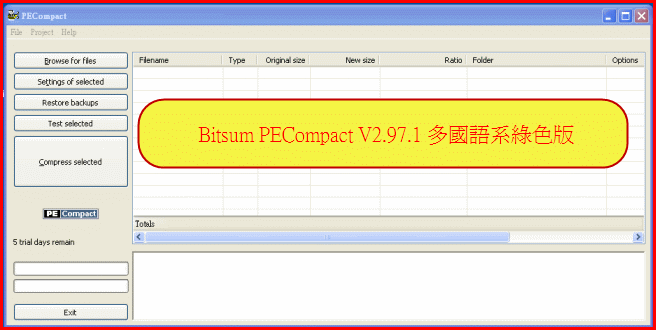 軟體資源檔壓縮解壓縮-Bitsum PECompact V2.97.1 繁體中文化綠色版下載網址: