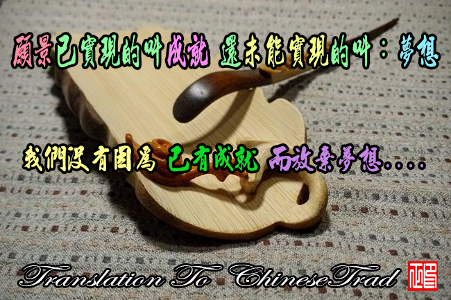 【洪總教頭】曾說:過去的理念已經實現的叫做:【成就】,而還未實現的就叫:【夢想】!我們從來沒因已有的【成就】而放棄【夢想】!