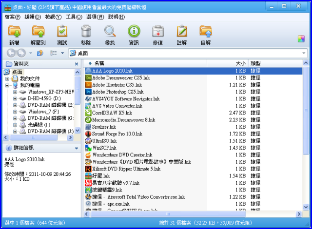 免費【壓縮、解壓縮軟體】好壓 HaoZip 2.5.8008 繁體中文(32/64)二合一版