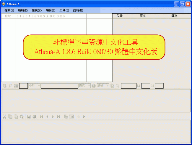 非標準字串資源中文化工具 Athena-A 1.8.6 Build 080730 繁體中文化版