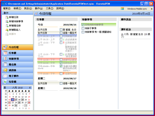 行事曆軟體-EssentialPIM Free 3.7 繁體中文版