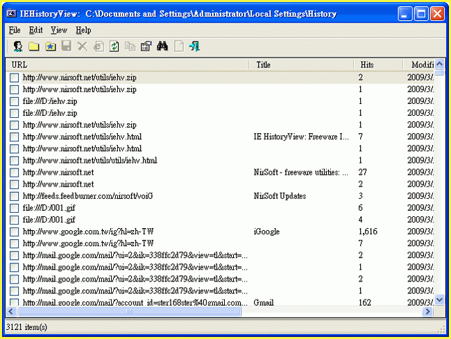 網路軟體(瀏覽輔助)IEHistoryView 1.40 繁體中文化免費版(管理網頁瀏覽歷史)