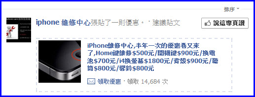 iphone 維修中心張貼了一則優惠?(讓人看了,就是:苦笑!)