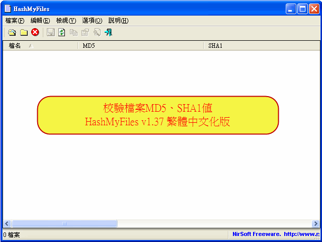 校驗檔案MD5、SHA1值HashMyFiles v1.37 繁體中文化版