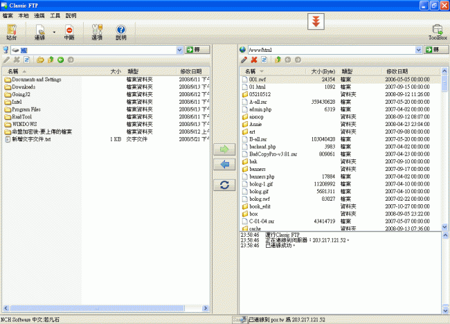 FTP上傳下載移除軟體-Classic FTP 繁體中文化版