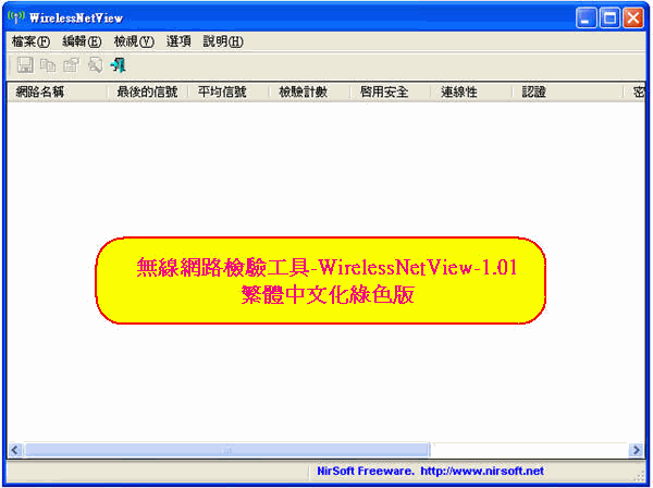 無線網路搜尋檢驗工具-WirelessNetView-1.01繁體中文化綠色版