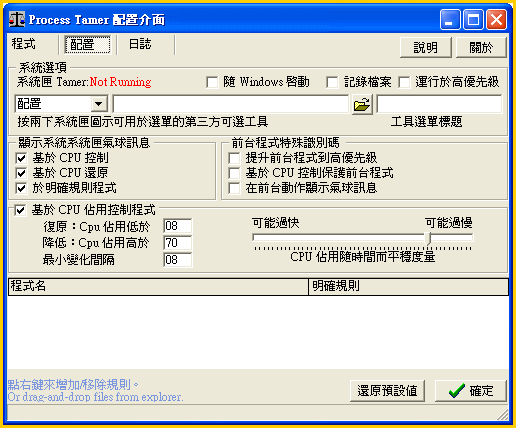 電腦防當機專家、增加系統穩定性-Process Tamer 2.09.01 中文化綠色版