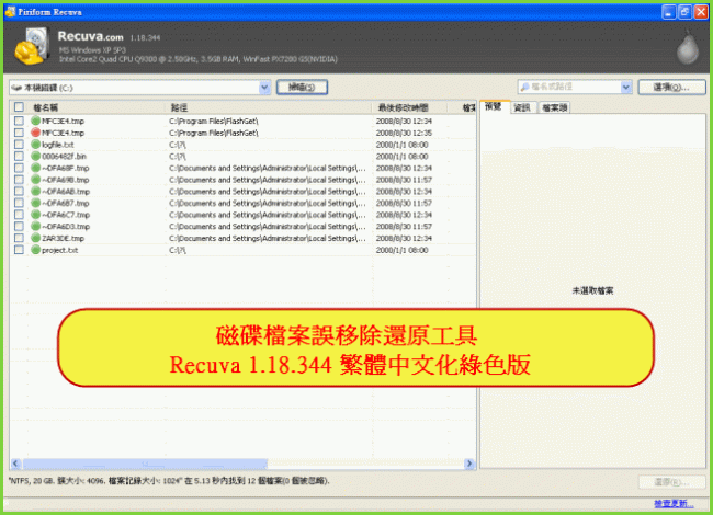 磁碟檔案誤移除還原工具 Recuva 1.18.344 繁體中文化綠色版