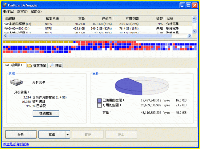 磁碟重組工具軟體-Defraggler 1.18.185-繁體中文語系版