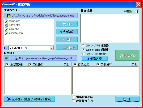 簡繁體中文內碼轉換工具 ConvertZ 8.02 (簡體文件轉換成繁體文件)