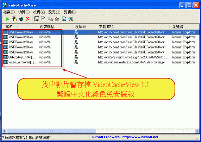 找出影片暫存檔 VideoCacheView 1.1 繁體中文化綠色免安裝版