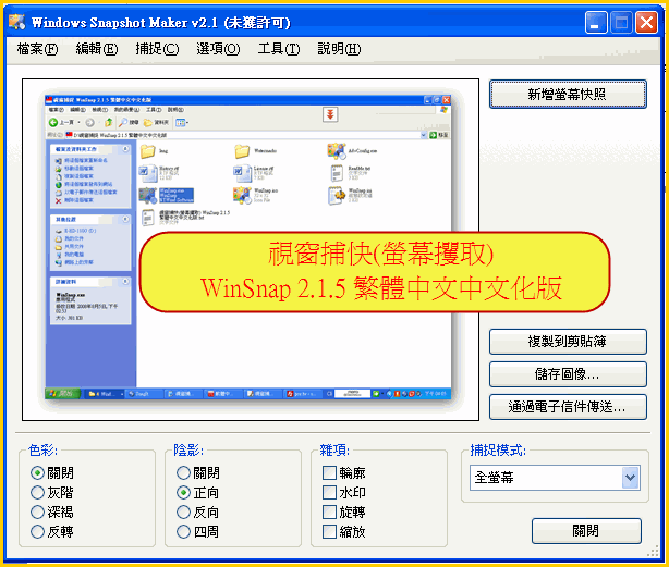 視窗捕快(螢幕攫取) WinSnap 2.1.5 繁體中文中文化版
