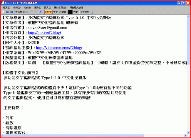 多功能文字編輯程式-Type It 1.0 中文化免費版