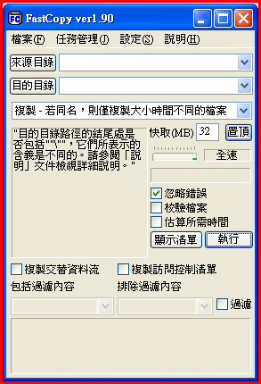 檔案複製、移除 FastCopy 1.90 繁體中文化版