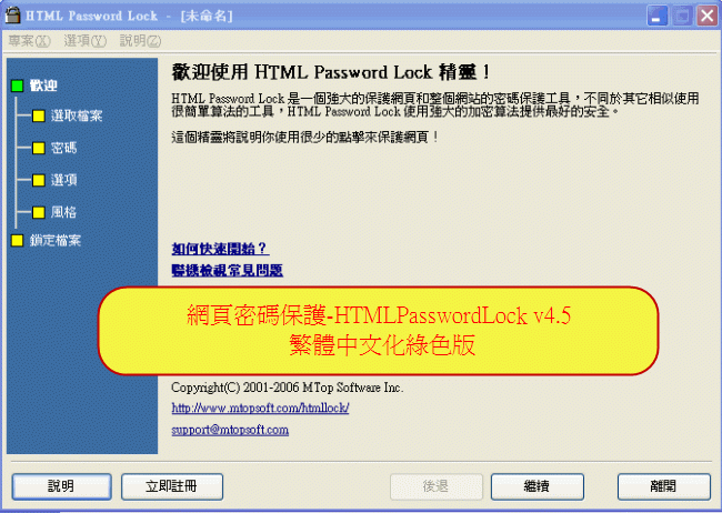 網頁密碼保護-HTMLPasswordLock v4.5 繁體中文化綠色版
