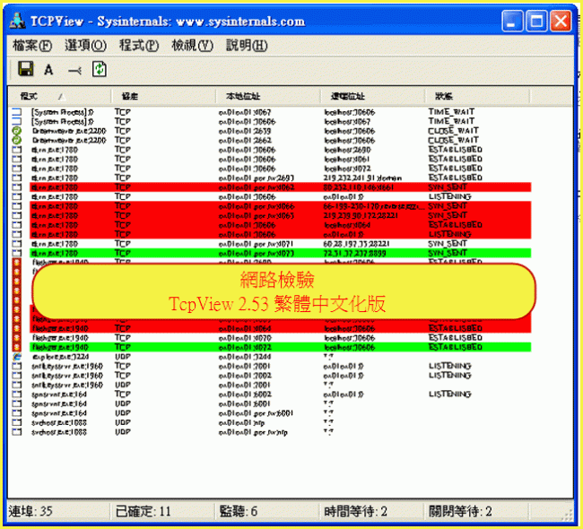 網路檢驗駭客與木馬-TcpView 2.53 繁體中文化版